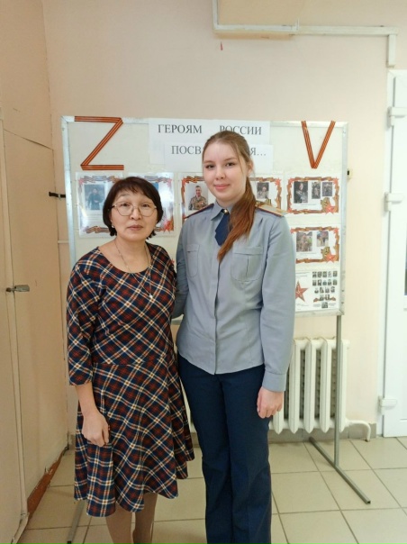 Мы были очень рады видеть в стенах родной школы нашу выпускницу Оксану Афанасьеву, студентку Самарского юридического института федеральной службы исполнения наказаний. Она рядовой внутренней службы, курсант 1 курса 4 взвода, спортсменка, наконец, она просто красавица! И очень форма ей к лицу!